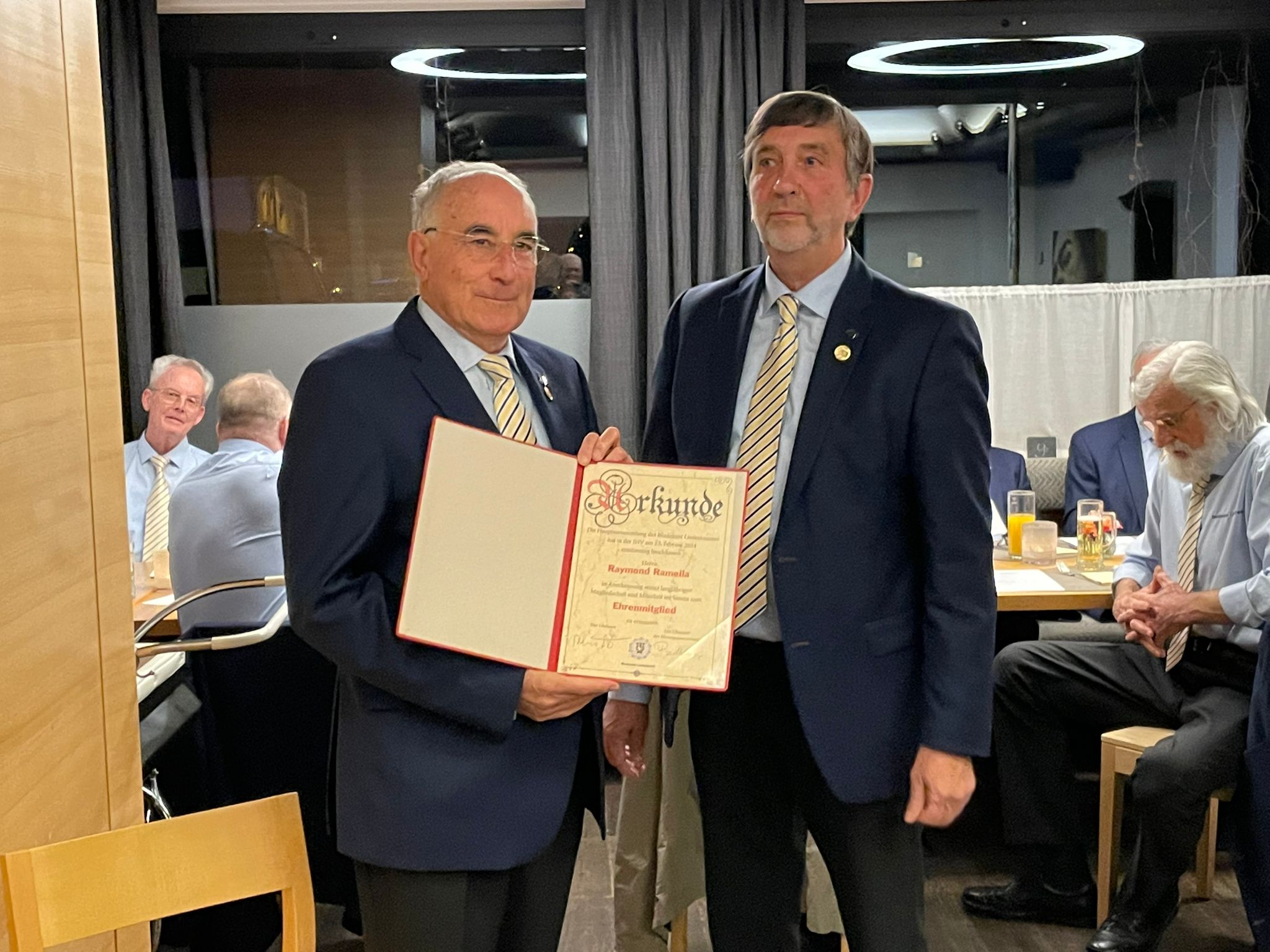Raymond Ramella (li) wird von Obmann Peter Bilgeri (re) zum Ehrenmitglied ernannt